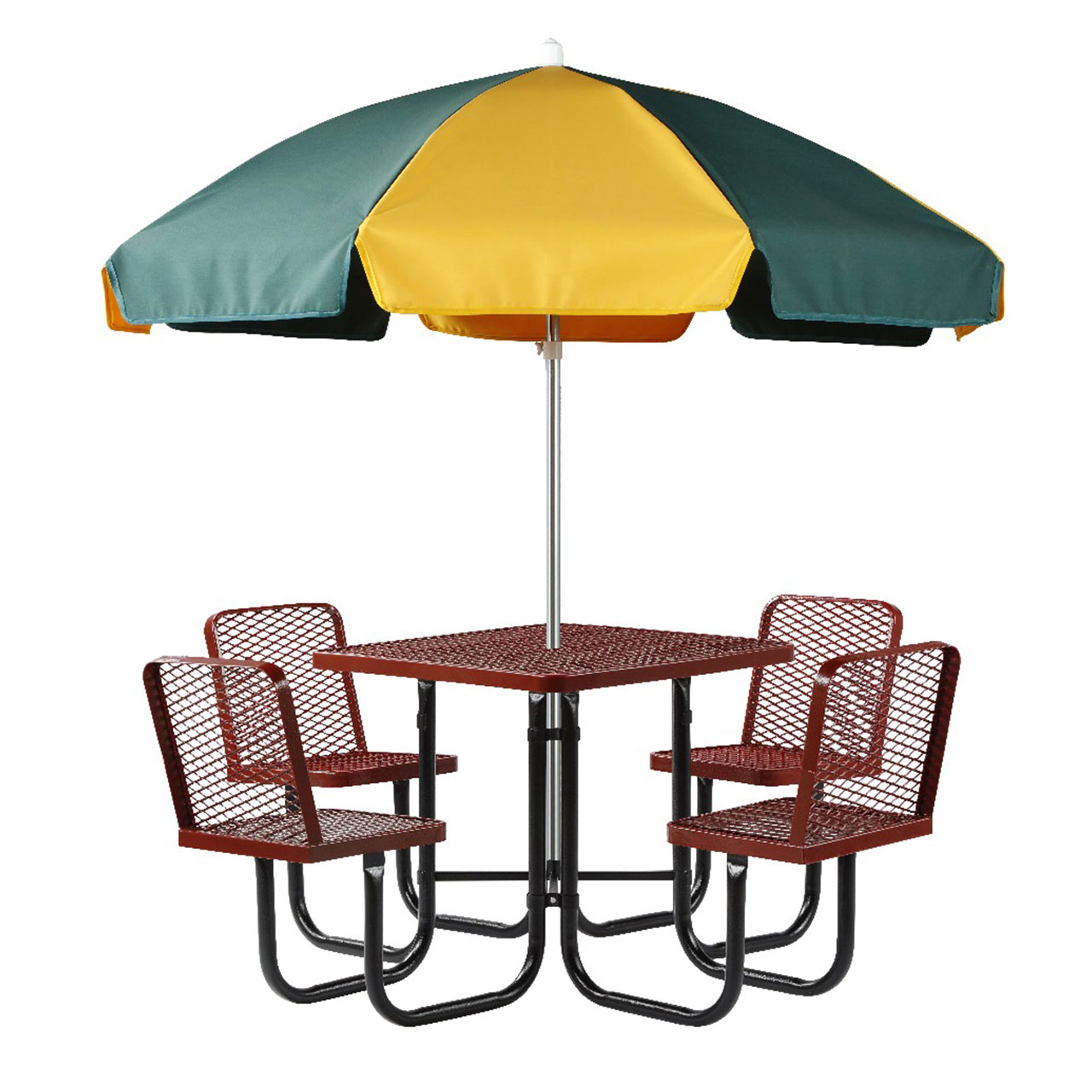 - طراحی یکپارچه شامل میز و نیمکت ثابت